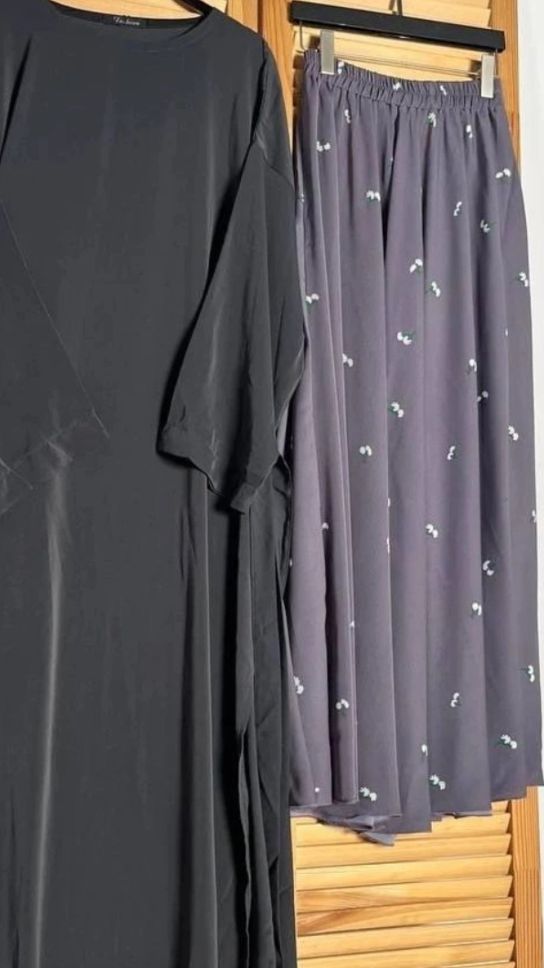 Cet ensemble se compose d'une tunique fluide et d'une jupe avec de petites fleurs. Les deux pièces sont légères et ne se froissent pas facilement, ce qui les rend pratiques. La tunique a une coupe ample et confortable, et la jupe est parfaite pour un look à la fois décontracté et élégant. Elle s'adapte bien à la taille standard, idéale pour le quotidien ou les sorties.